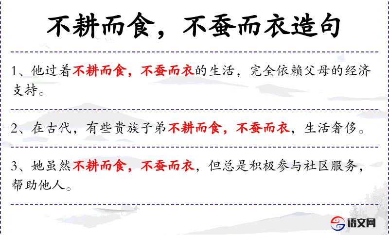 - 谓语:“不耕而食,不蚕而衣,完全依赖社会福利生活”