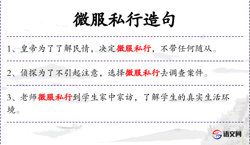 - 微服私行:成语,指不公开身份,私下进行活动。