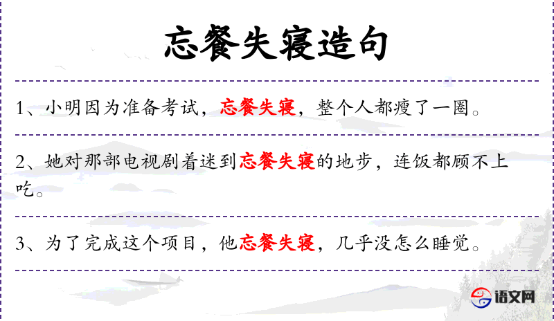 - 相关成语:“废寝忘食”与“忘餐失寝”意思相近,都形容极度专注于某事。