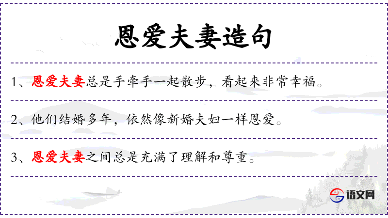 5. 【恩爱】 (夫妻 )亲热~夫妻 ㄧ小两口儿十分~。