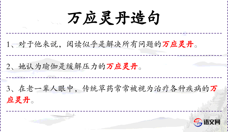 - 万应灵丹:成语,比喻能解决各种问题的有效方法。
