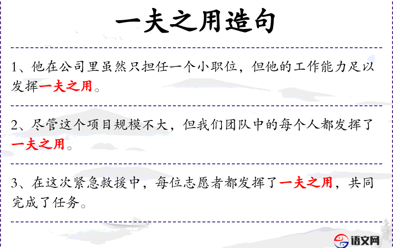 1. 【一夫之用】 指仅能当一人之用,而无兼人之能。