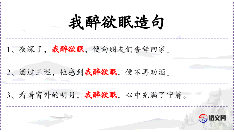 - 醉欲眠:形容醉酒之后想要睡觉的状态。