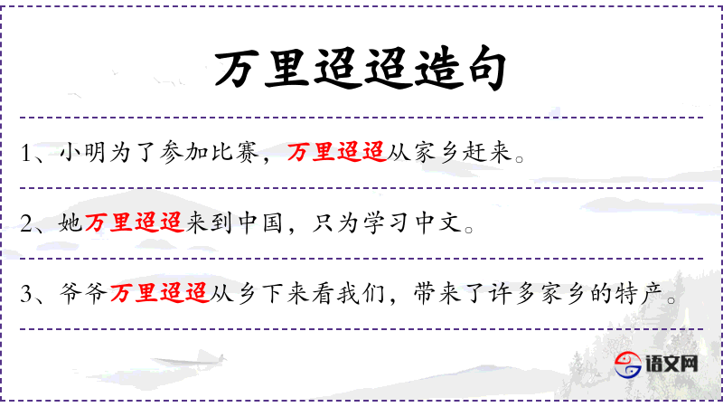 - 万里迢迢:成语,形容路途遥远。