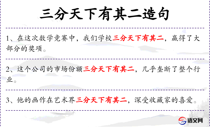 句子:“在这次数学竞赛中,我们学校三分天下有其二,赢得了大部分的奖项。”