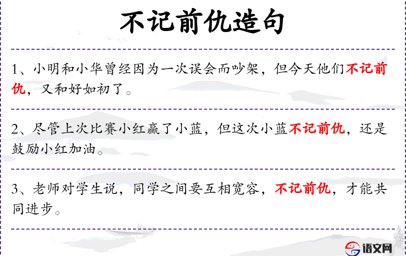 1. 【不记前仇】 - 指不计较以前的仇恨,任人唯贤。
