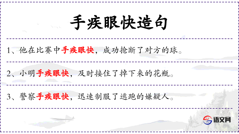- “手疾眼快”是一个成语,常用于形容人的反应迅速。