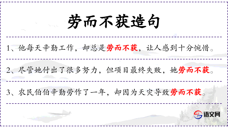 - 劳而不获:成语,表示付出了努力但没有得到回报。
