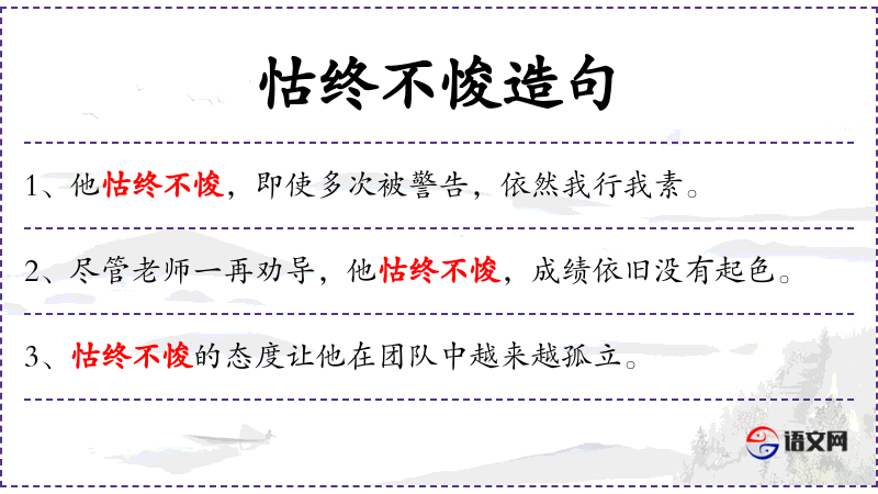 - 谓语:怙终不悛、我行我素