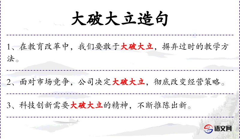 句子中“大破大立”体现了中华文化中对于彻底变革的重视。在环境保护的背景下,这一成语强调了政策改革的彻底性和必要性。