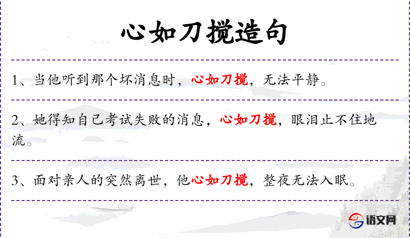 - 心如刀搅:成语,形容内心极度痛苦。