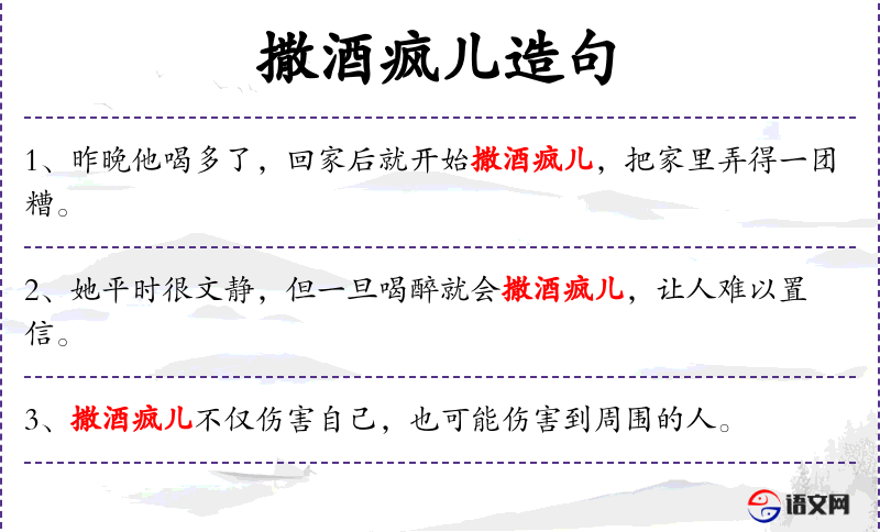 - 撒酒疯儿:指酒后行为失控,失去理智。