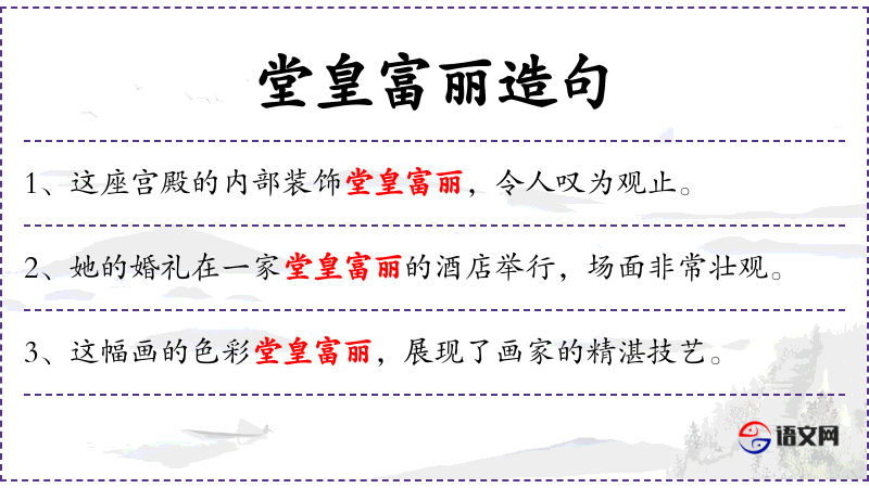 - 堂皇富丽:豪华、气派、富丽堂皇
