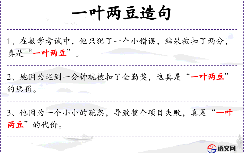 - “一叶两豆”:成语,比喻小错误造成大影响。