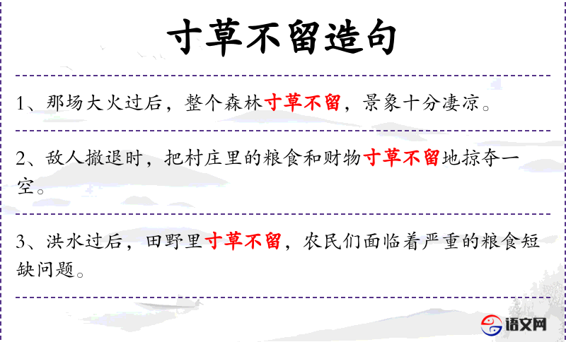 - “寸草”指极少的草,“不留”表示没有任何草存在,形容环境极度荒凉。