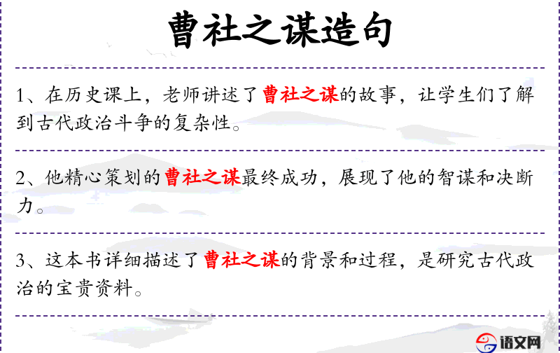 1. 【曹社之谋】 - 社:曹之国社。后指灭亡他人国家的阴谋。