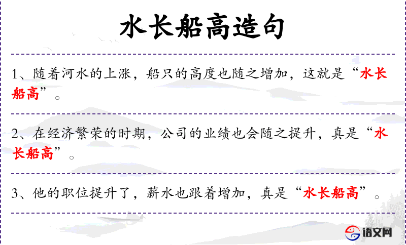 5. 【水长船高】 比喻事物随着所凭借的基础的提高而提高。