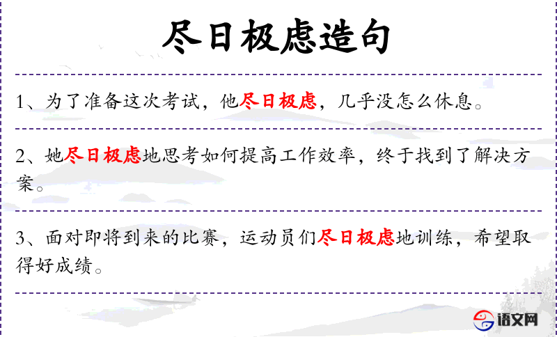 句子:“学生们为了期末考试尽日极虑,希望能取得优异的成绩。”