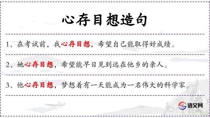 句子:“[他心存目想,梦想着有一天能成为一名伟大的科学家。]”