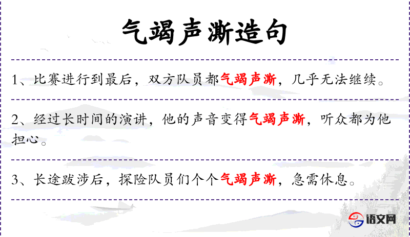 4. 【气竭声澌】 - 气力竭尽,声音嘶哑。同“气竭声嘶”。