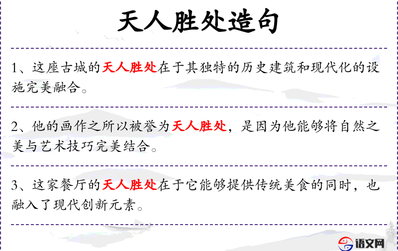 句子:“这座博物馆的天人胜处在于它不仅展示了丰富的历史文物,还提供了互动式的学习体验。”