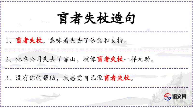 1. 【盲者失杖】 杖:手杖,拐杖。瞎子失去了拐杖。比喻失去依靠。