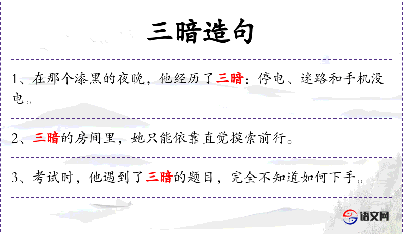 1. 【三暗】 三件不明智之事。指用兵作战时,派遣没有战斗力和不可信任的人去防守﹑出战和探察敌情。