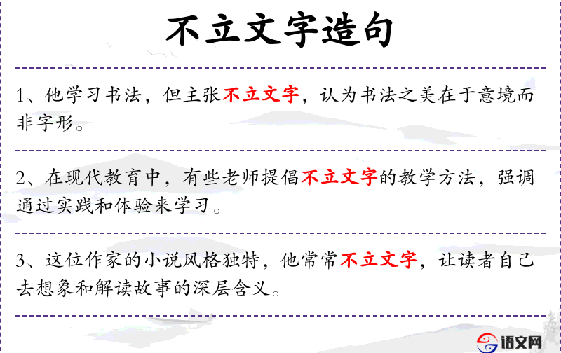 句子:“在现代教育中,有些老师提倡不立文字的教学方法,强调通过实践和体验来学习。”