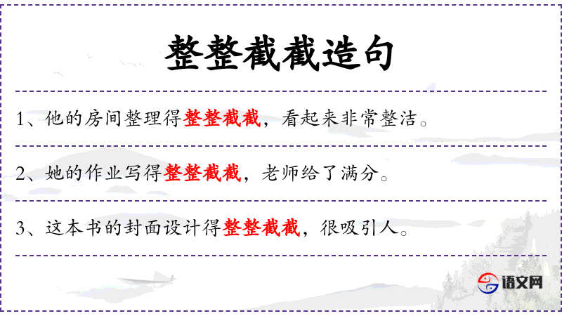- 宾语:“整整截截”