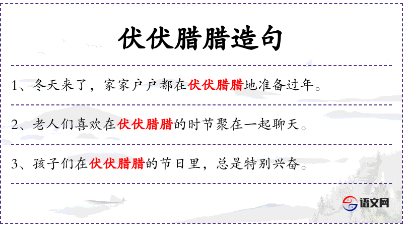 句子:“在伏伏腊腊的节日里,人们会穿上新衣服,庆祝新年的到来。”