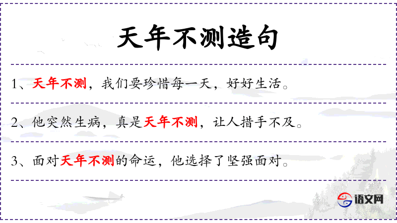 句子:“天年不测,我们要学会接受生活中的不可预见性。”