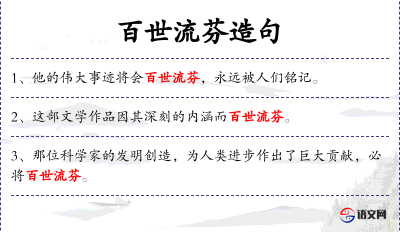 4. 【百世流芬】 - 美名永传于后世。同“百世流芳”。