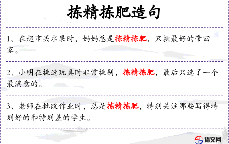 - 谓语:拣精拣肥