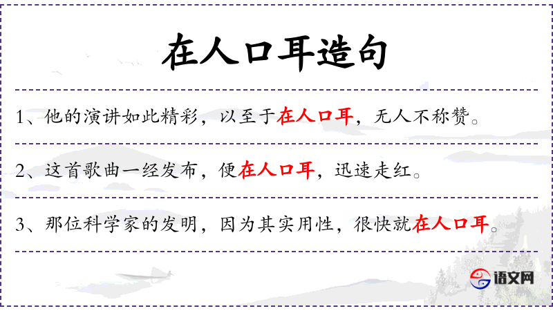 - 成语、典故:“在人口耳”可能源自“口耳相传”,表示通过口头传播。