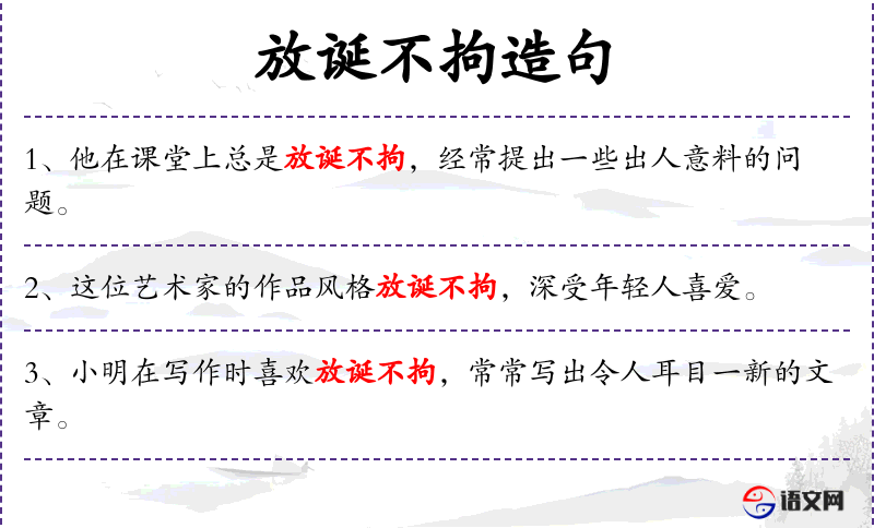 - 放诞不拘:不拘一格、自由奔放、别出心裁