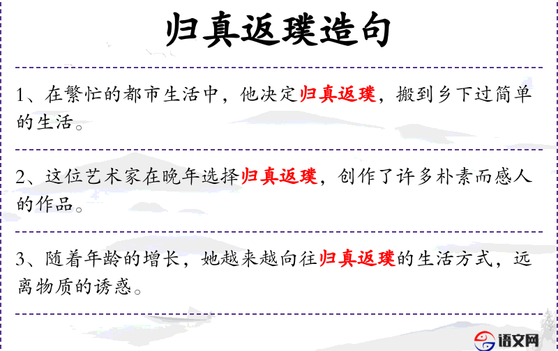 - 归真返璞:指回归简单、自然的生活方式,摒弃复杂和人为的装饰。