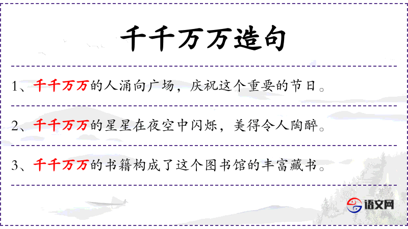 1. 【千千万万】 形容为数极多。