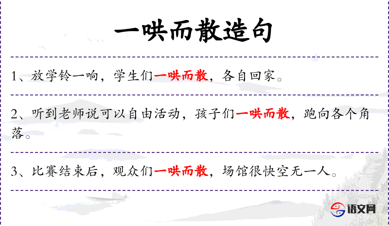 1. 【一哄而散】 - 哄:吵闹。形容聚在一起的人一下子吵吵嚷嚷地走散了。