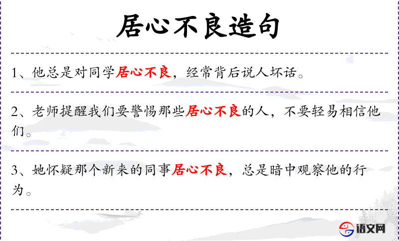 - 句子中“居心不良”反映了中华文化中对人际关系中诚信和真诚的重视。