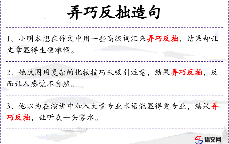 句子中的“弄巧成拙”是一个典型的汉语成语,反映了中华文化中对于“巧”与“拙”的辩证思考。这个成语提醒人们在追求技巧和巧妙时,也要注意实际效果和实用性。