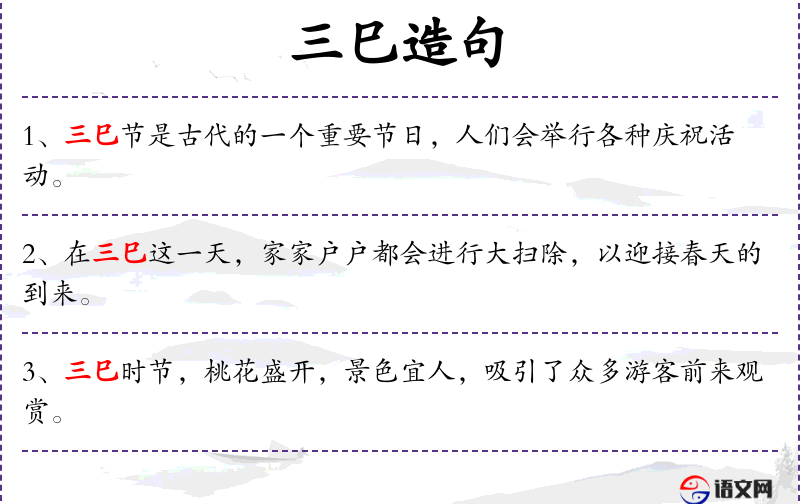 1. 【三巳】 - 即上巳。原指农历三月第一个巳日,魏以后专指农历的三月初三日。