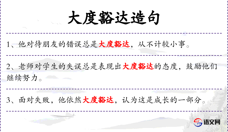 - 老师总是以大度豁达的态度对待学生的失误,并鼓励他们不懈努力。