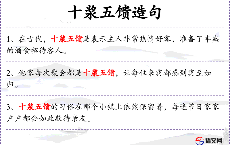 句子:“十浆五馈的传统在某些地区依然盛行,尤其是在重要的节日和庆典活动中。”