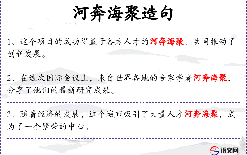 1. 【河奔海聚】 - 比喻思路开阔,文辞畅达。