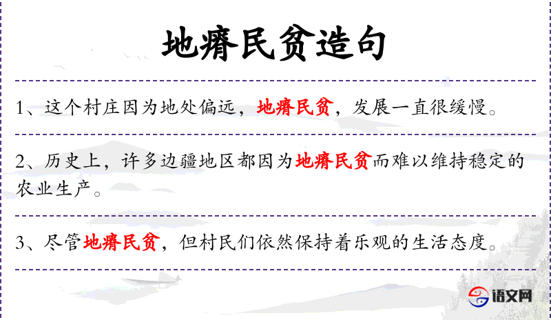 - 地瘠民贫:形容土地贫瘠,人民贫困。