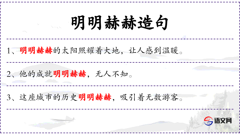 - 明明赫赫:形容非常显著、著名。