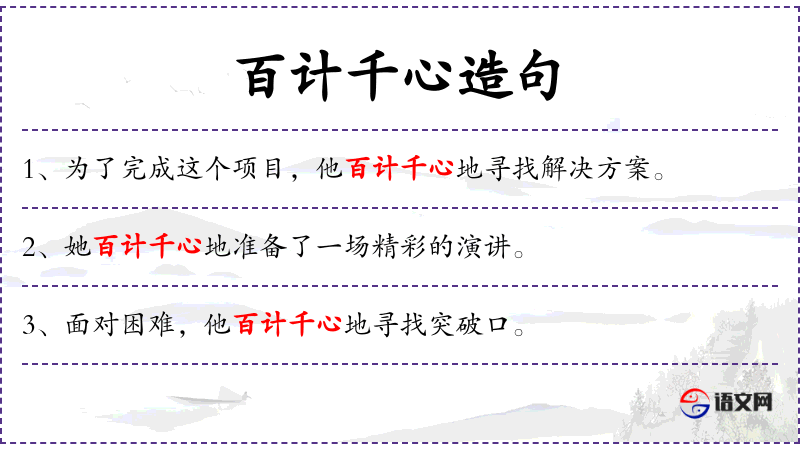 3. 【百计千心】 - 想尽或用尽一切办法。