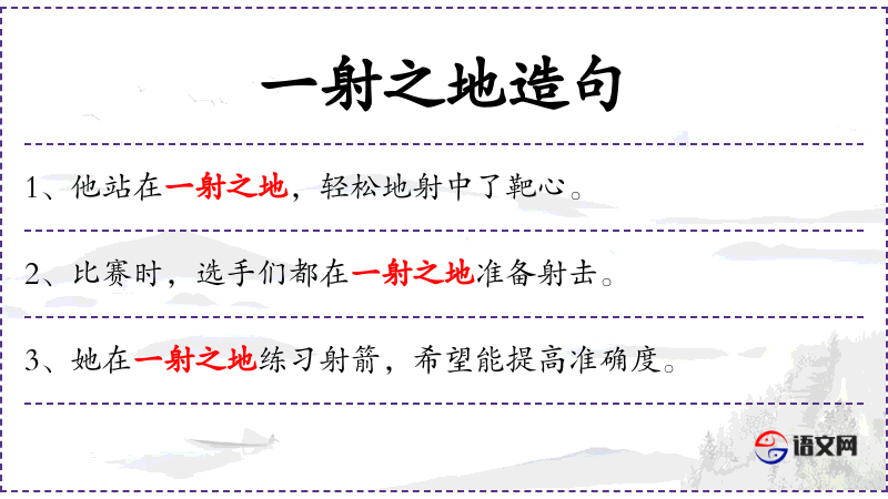 1. 【一射之地】 一箭所能达到的距离,约当一百二十至一百五十步。