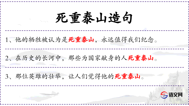 3. 【死重泰山】 - 比喻死得光荣。