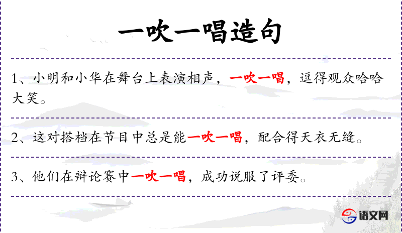 1. 【一吹一唱】 - 吹:吹嘘。唱:唱和。两个人说话,互相帮衬。